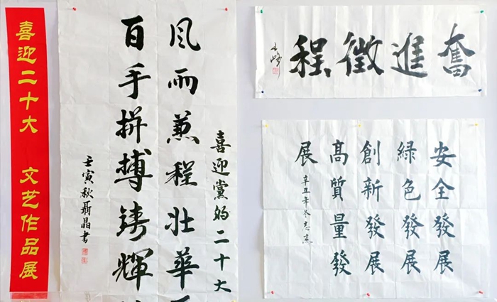 此次展览,从各单位上交的各类作品中精选出书法作品16件,摄影作品21件,绘画作品7件及手工艺作品10件进行现场展示。遒劲有力的书法作品,美不胜收的摄影作品和绘画作品,以及不同风格的手工艺作品洋溢着北京化工集团干部职工期盼党的二十大胜利召开的喜悦心情,也充分展现出大家丰厚的文化素养和多彩的业余文化生活。