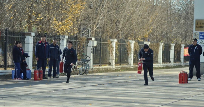 为使培训“落地生根”,在消防站专业人员的指导下,全体员工在室外进行了灭火器“提、拔、握、压”四步法的实操训练,以及消防水带的快速连接与使用。大家轮流上场,亲身体验如何正确使用消防器材扑灭初起火灾的实用技术。