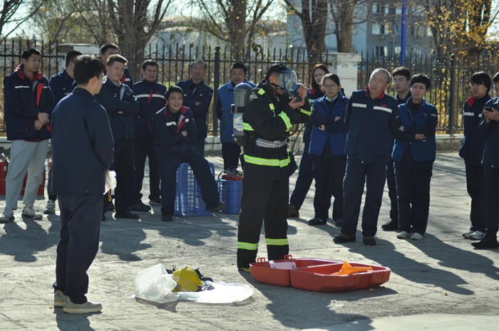 化研院首先进行了模拟办公楼起火疏散演练。培训伊始,消防站专业人员结合近年来典型的火灾案例,深入浅出地讲解了火灾危害、报警程序、逃生注意事项等极具实用性的方式方法。