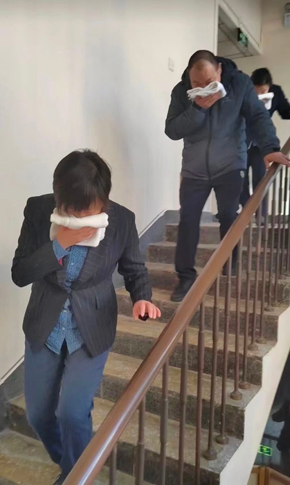 此次演练模拟公司办公区因电路短路引发 “火灾”,现场产生大量浓烟,火势逐渐蔓延,情况十分紧急。演练当天,随着一阵急促的消防警报声响起,演练正式拉开帷幕。接到 “火情” 报告后,演练工作领导小组立即启动应急响应预案,各专项小组迅速行动,有序引导员工用湿毛巾捂住口鼻,弯腰低姿快速通过疏散通道,向指定的室外安全集合点撤离。在“火情”可控的前提下,灭火行动组、医疗救护组迅速展开“灭火”和“伤员抢救”工作。